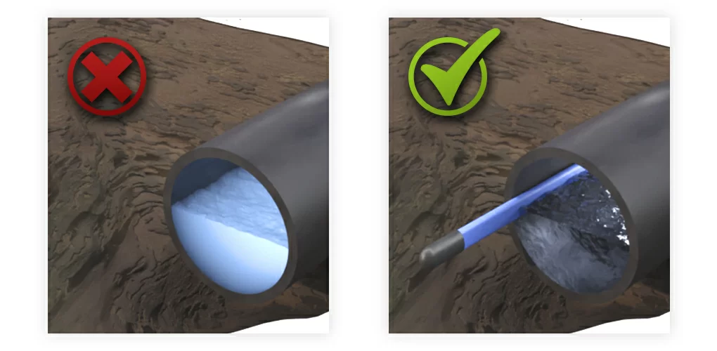 - Непостоянный поток жидкости (с такой же проблемой и для водопроводных труб сталкиваются владельцы загородных домов с сезонным проживанием). Поток жидкости не заполняет сечение трубы, вода застаивается и замерзает.