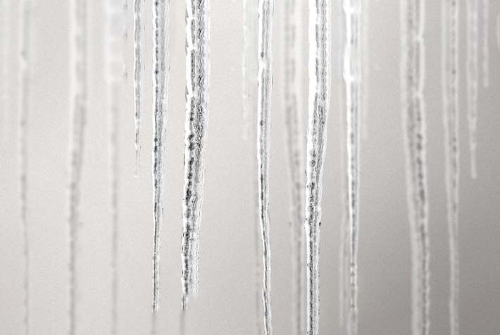 Когда солнце нагревает кровлю здания, снег тает и стекает в карниз. Вода в карнизе частично стекает в желоб, а частично намерзает. Как только весь карниз застынет, талая вода начнет стекать с него и замерзать в виде сосулек.