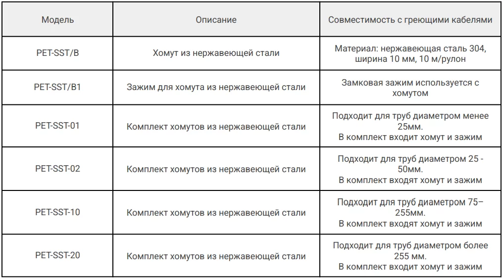 PET-SST-02 комплект хомутов из нержавеющей стали