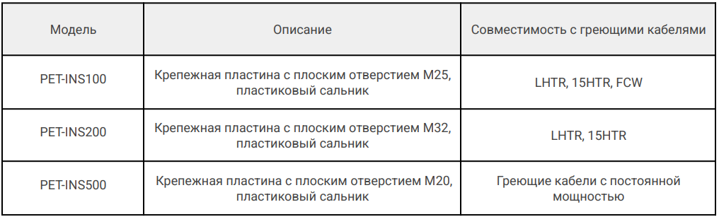 Набор для прохода через теплоизоляцию для греющих кабелей PET-INS100 (плоское отверстие M25)