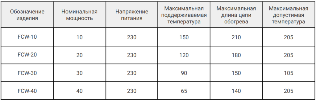 Резистивный греющий кабель постоянной мощности FCW2-30