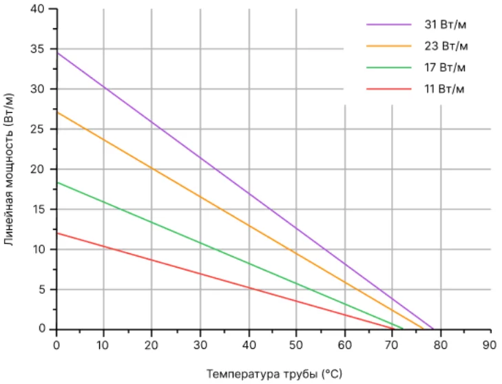Номинальное тепловыделение в нормированных условиях для саморегулирующихся нагревательных кабелей.
