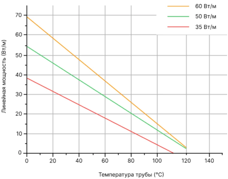 Номинальное тепловыделение в нормированных условиях для саморегулирующихся нагревательных кабелей.