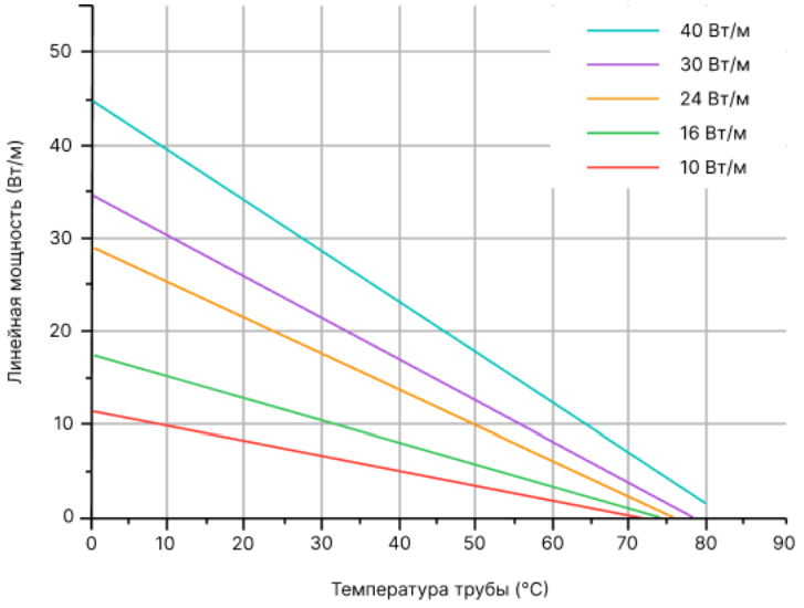 Номинальное тепловыделение в нормированных условиях для саморегулирующихся нагревательных кабелей