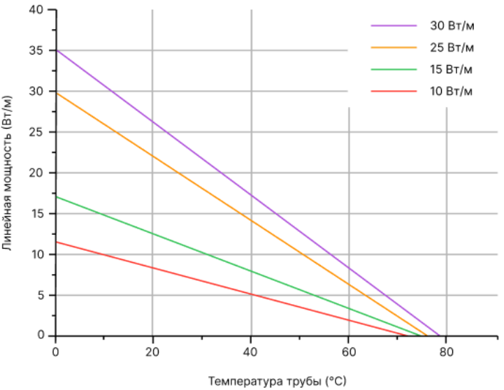 Номинальное тепловыделение в нормированных условиях для саморегулирующихся нагревательных кабелей.