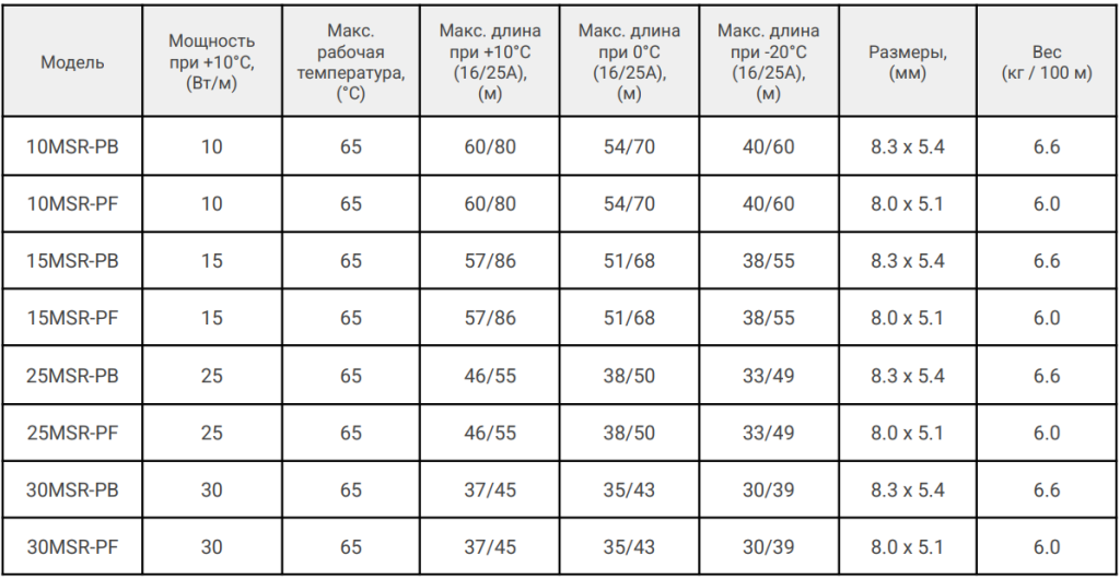 Саморегулирующиеся греющие кабели MSR эффективно поддерживают температуру и защищают от замерзания трубопроводы малого диаметра, резервуары, клапаны и фланцы. Они подходят для работы как в обычных условиях, так и в агрессивных или взрывоопасных средах — для этого предусмотрены модели с фторполимерной оболочкой. Кабели с фторполимерной наружной оболочкой можно использовать для обогрева водопроводов, включая системы с питьевой водой — они имеют соответствующий сертификат безопасности. Продукция соответствует экологическим стандартам и обеспечивает надежность, безопасность и долговечность.