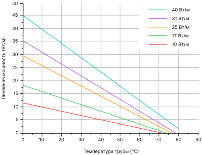 Номинальное тепловыделение в нормированных условиях для саморегулирующихся нагревательных кабелей.