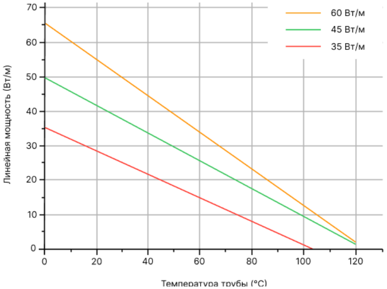 Номинальное тепловыделение в нормированных условиях для саморегулирующихся нагревательных кабелей.