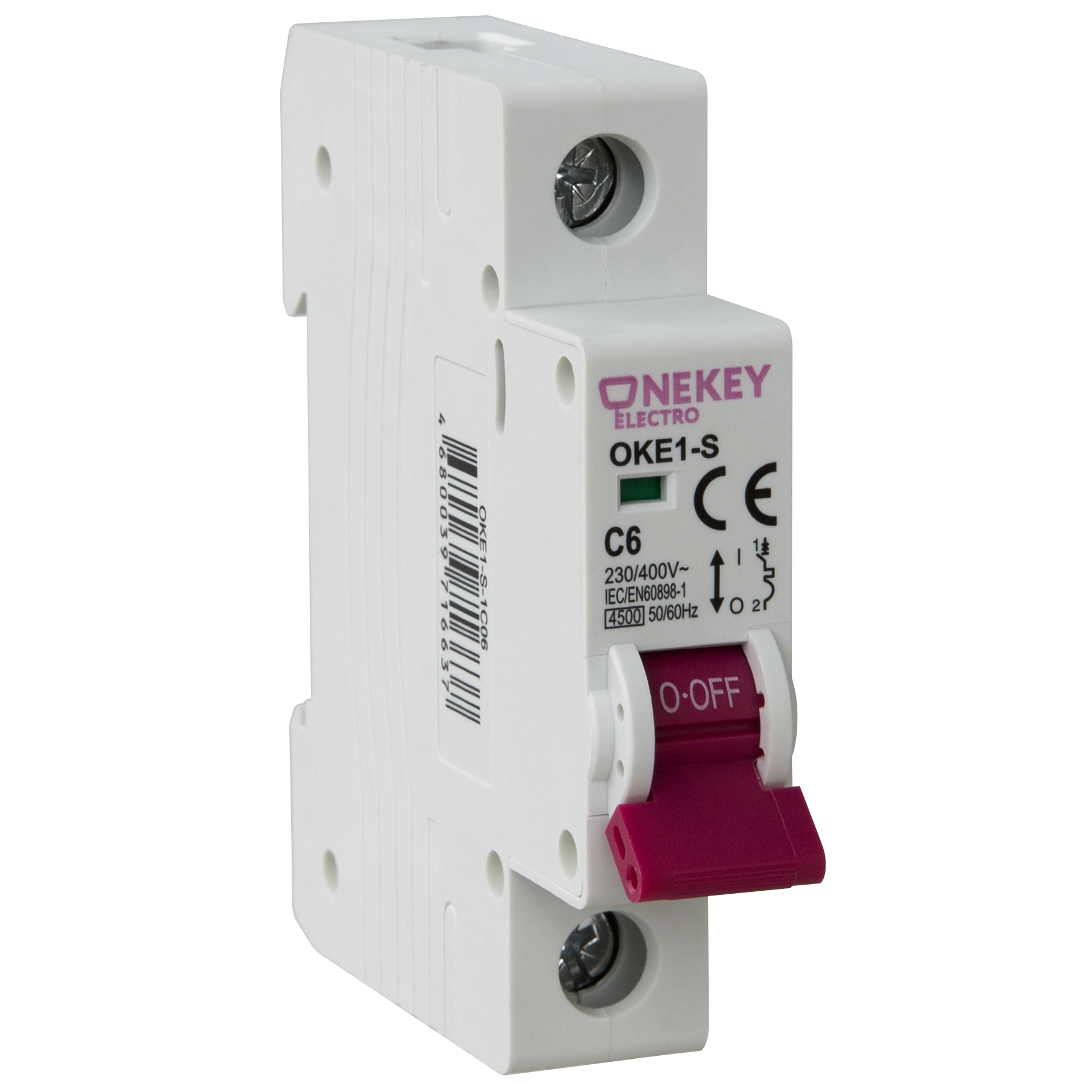 Серия автоматических выключателей OKE1-S имеет характеристику срабатывания категории С. Срабатывание автомата происходит практически мгновенно, при скачке тока, превышающем номинальный в 5 – 10 раз. Антипрогарная пластина защищает корпус изделия от прогорания при коротких замыканиях. Пластиковый корпус и детали аппарата выполнены из материала, не поддерживающего горение. Все это гарантирует повышенную электробезопасность изделия.