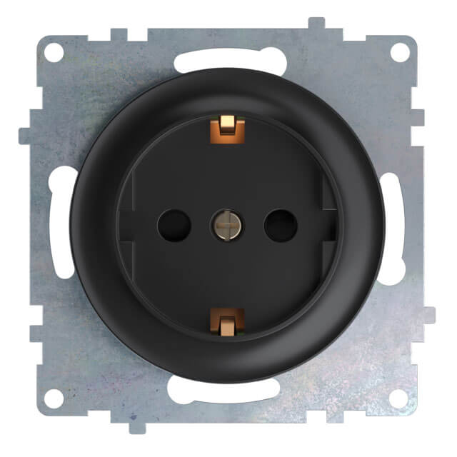 Розетка электрическая OneKeyElectro Florence с заземлением, защ. шторки, винтовые контакты, черная