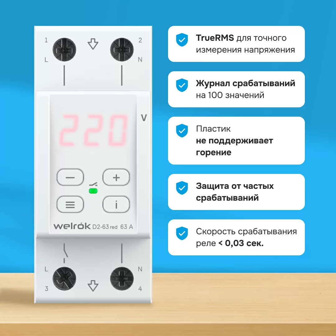 Welrok D2-63 red реле напряжения на 3 клеммы