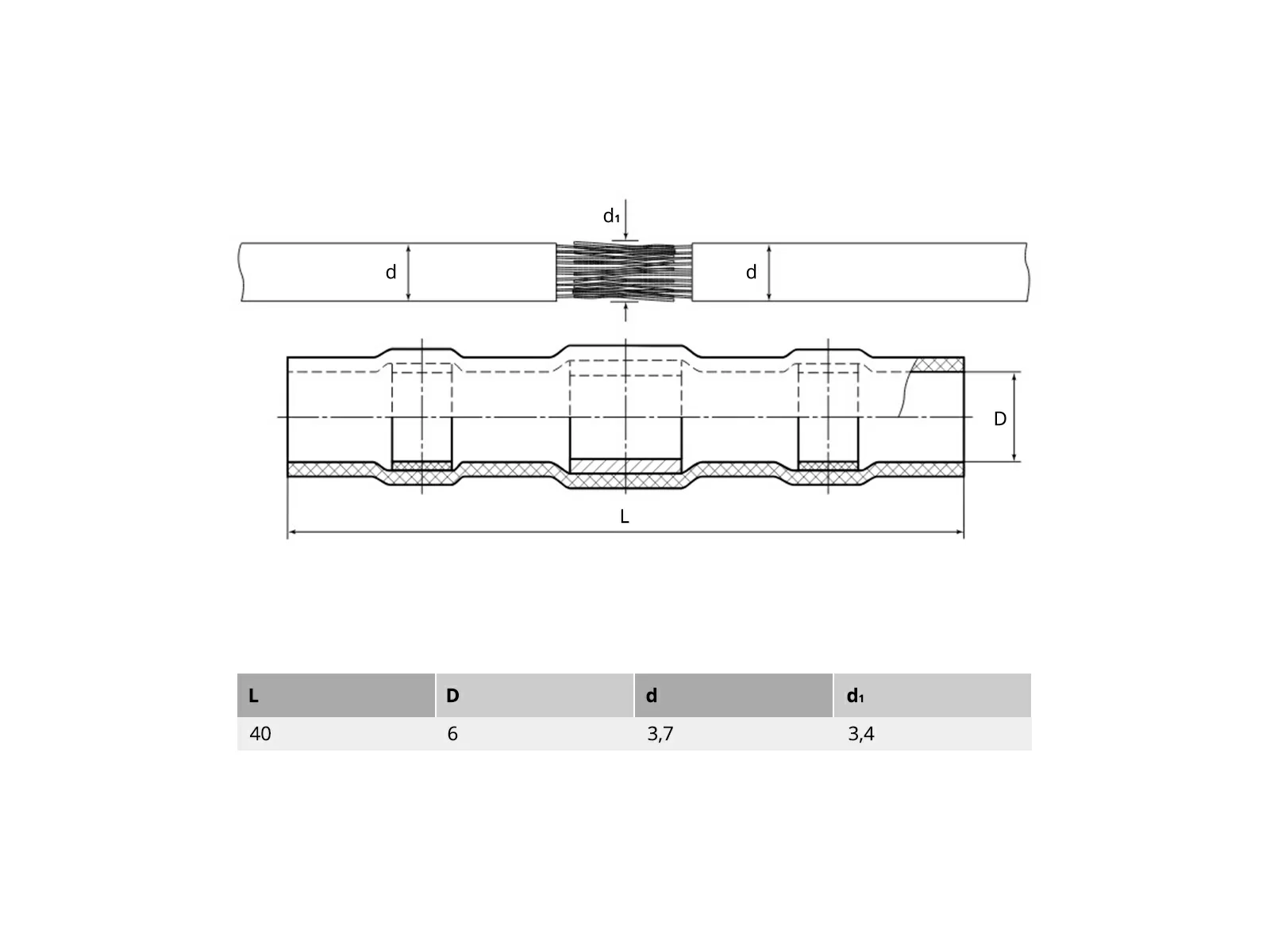 - Во краям соединителя на внутренней поверхности термоусаживаемой трубки интегрированы цветные пояски термоплавкого клея, обеспечивающие полную герметичность соединения после усадки