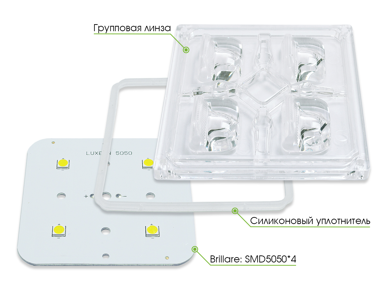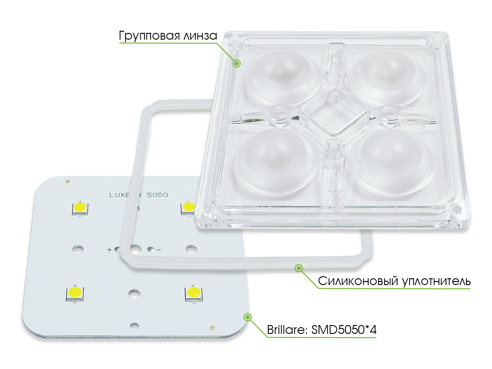 Чтобы сделать для наших клиентов процесс создания новых светильников максимально удобным, в комплекте с данным светодиодным модулем поставляются групповая линза (ПММА) и силиконовый уплотнитель. Эти комплектующие позволяют создать световой модуль со степенью защиты IP65.