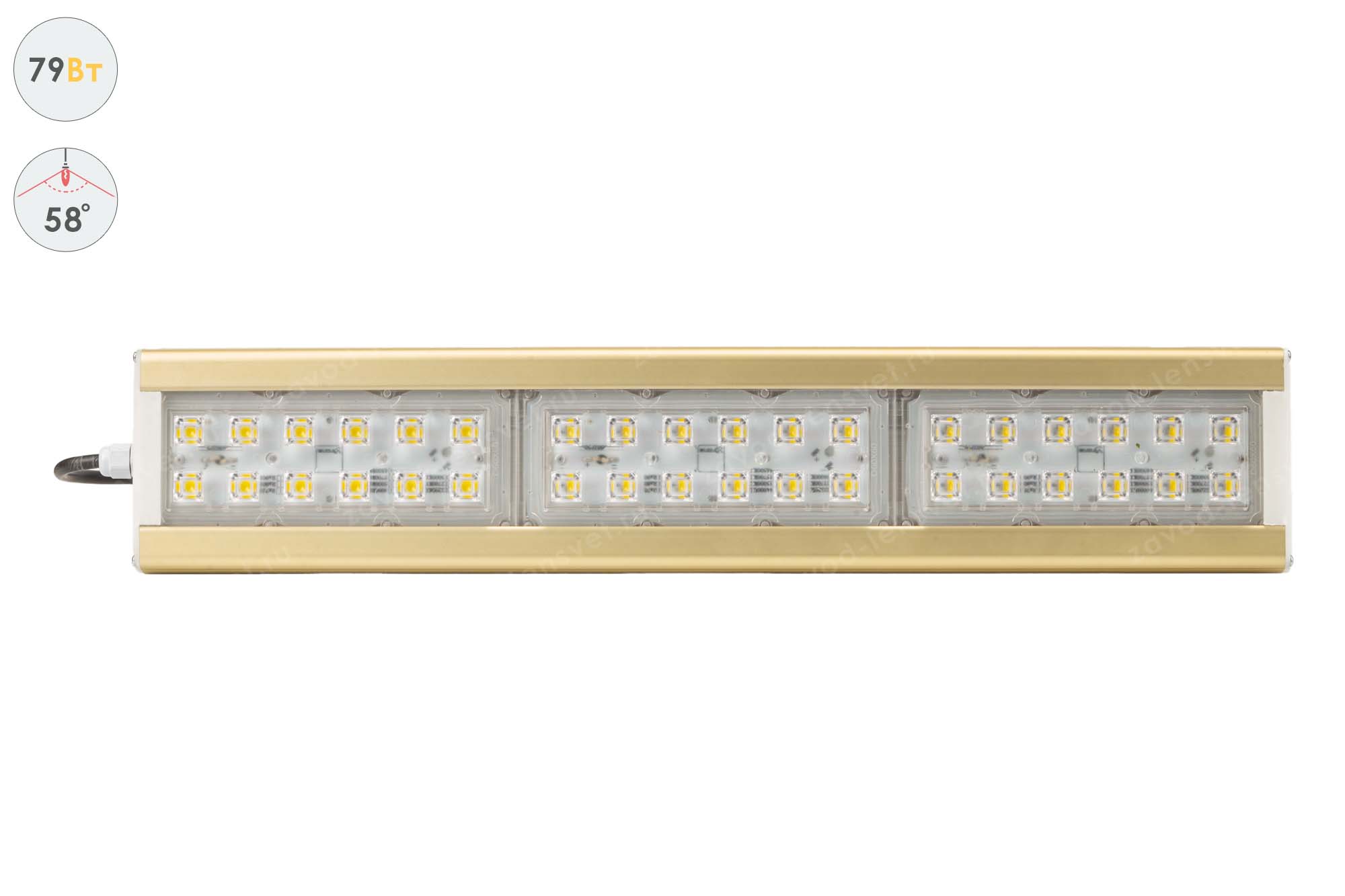 Золотой экструдированный алюминиевый профиля (анодированный) , вторичная оптика из акрила (ПММА) с силиконовой прокладкой. |