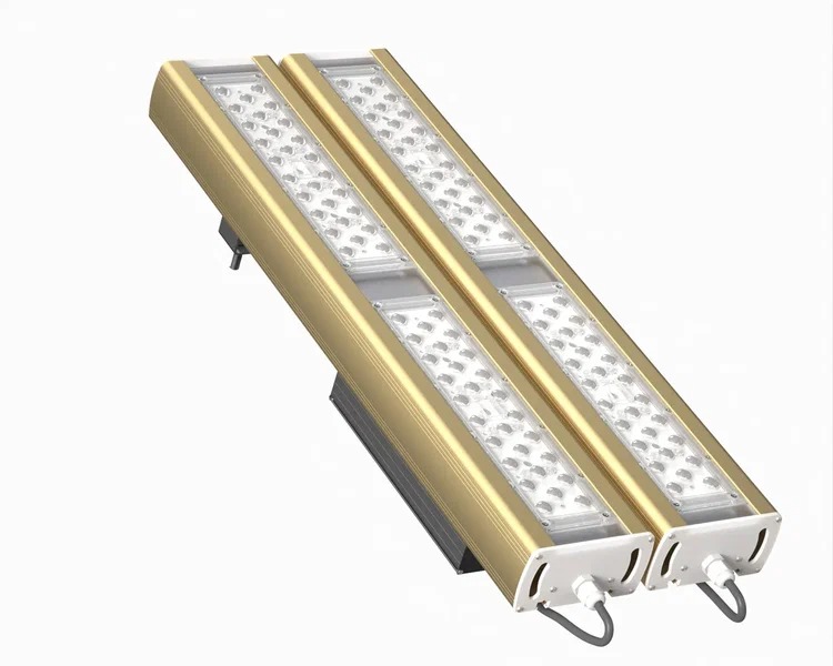 Золотой экструдированный алюминиевый профиля (анодированный) , вторичная оптика из акрила (ПММА) с силиконовой прокладкой. |