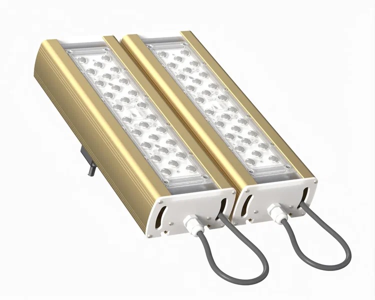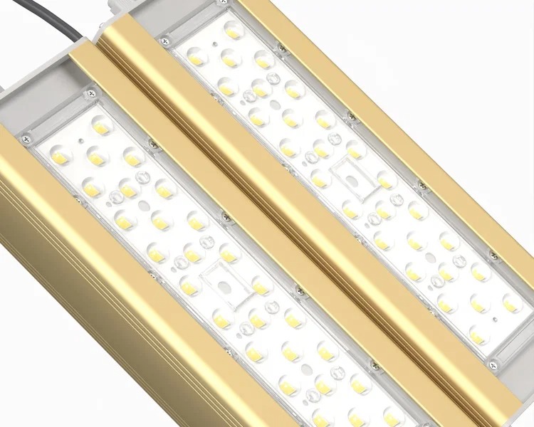 Золотой экструдированный алюминиевый профиля (анодированный) , вторичная оптика из акрила (ПММА) с силиконовой прокладкой. |