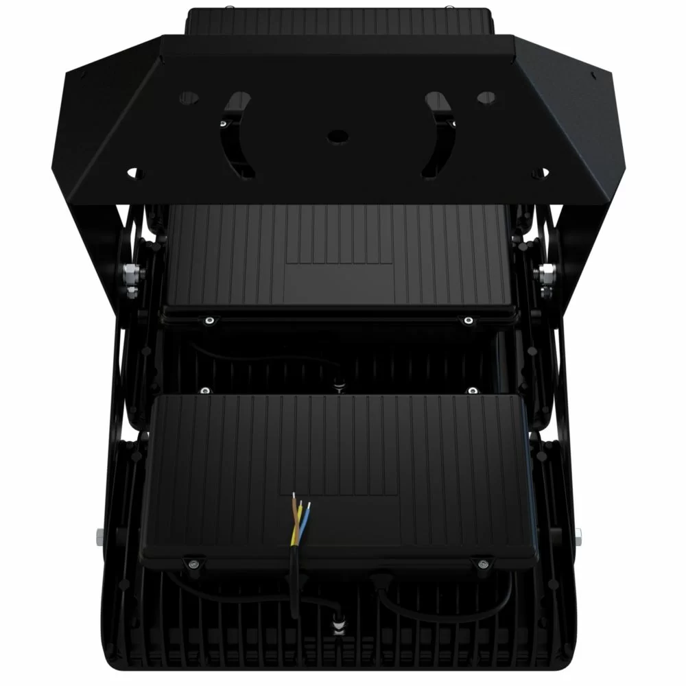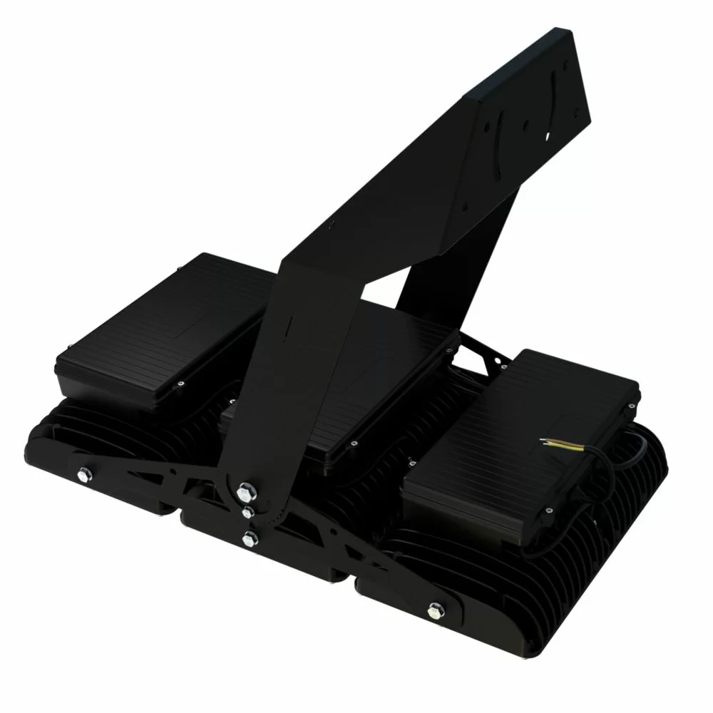 Литой корпус из алюминиевого сплава выполняет функцию радиатора: теплопроводящие ребра, расположенные строго вертикально, обеспечивают естественную конвекцию и помогают корпусу эффективнее отводить тепло от светодиодов. У прожектора может быть несколько модулей: от 3 до 6 штук в зависимости от мощности. Угол наклона каждого модуля можно регулировать отдельно. Корпус покрыт порошковой краской (по запросу возможна окраска в любой цвет по каталогу RAL).