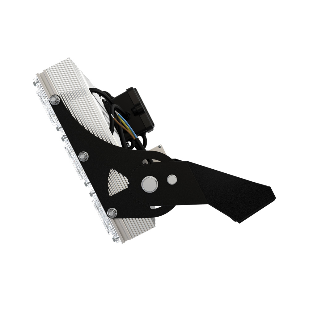 Прожекторы мощностью 200–300 Вт поставляются с кронштейнами, которые имеют специальные зубцы для облегчения регулировки прибора.