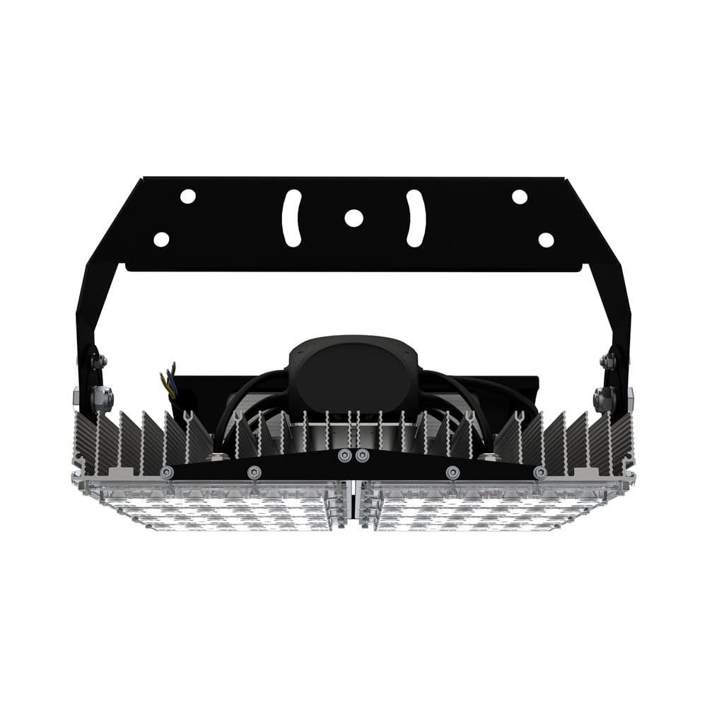 В комплекте идёт кронштейн, который позволяет регулировать угол наклона прожектора. Специальные зубцы на кронштейнах (для светильников 200-300 Вт) дополнительно облегчают регулировку положения прожектора.