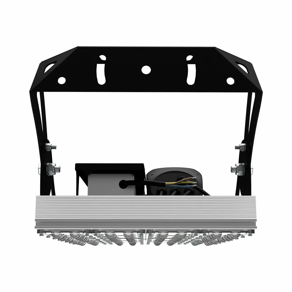 В комплекте идёт кронштейн, который позволяет регулировать угол наклона прожектора. Специальные зубцы на кронштейнах (для светильников 200-300 Вт) дополнительно облегчают регулировку положения прожектора.