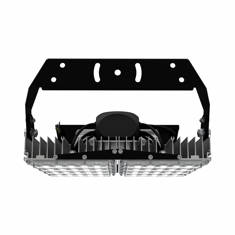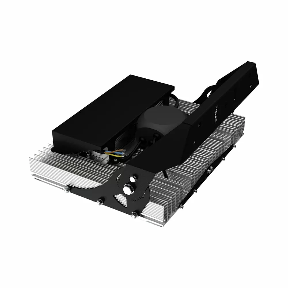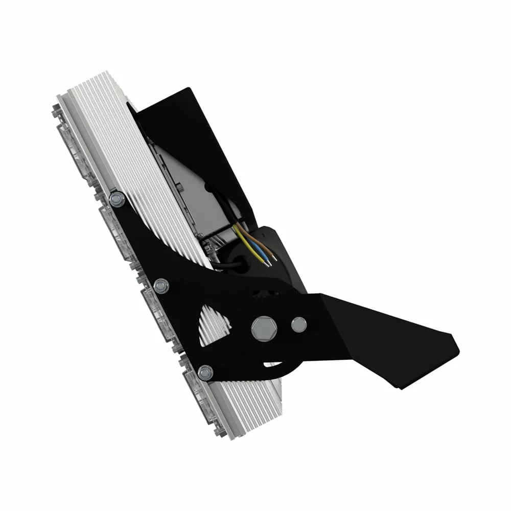 В комплекте идёт кронштейн, который позволяет регулировать угол наклона прожектора. Специальные зубцы на кронштейнах (для светильников 200-300 Вт) дополнительно облегчают регулировку положения прожектора.