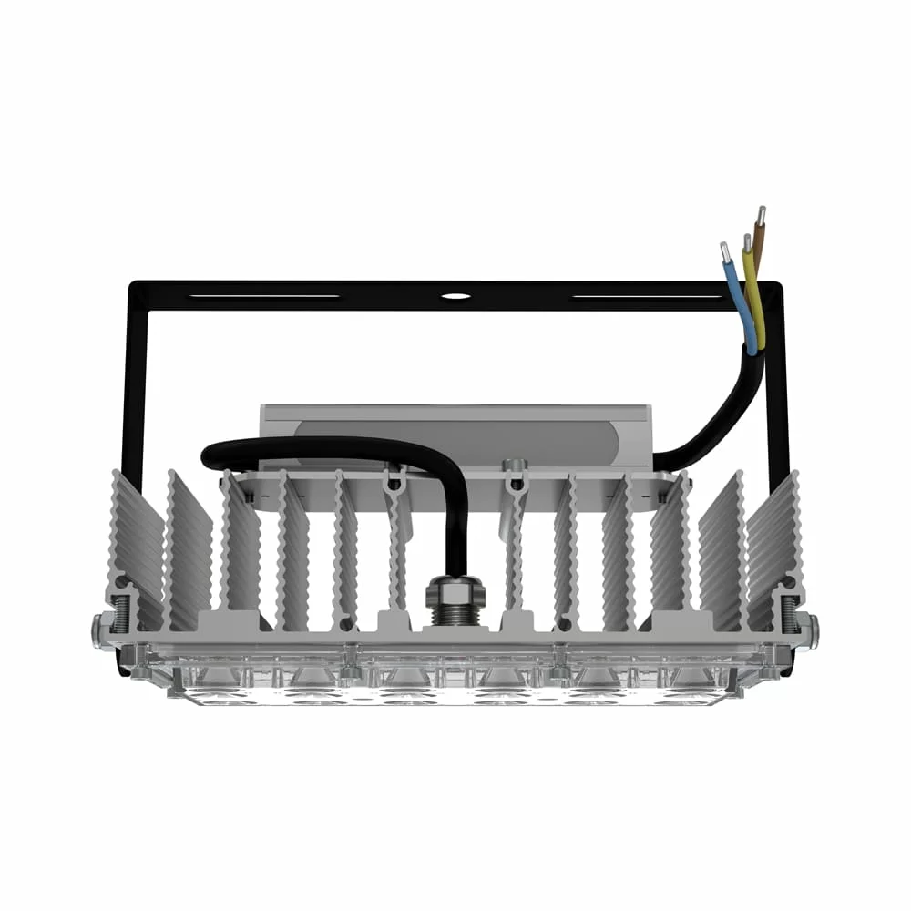В комплекте идёт кронштейн, который позволяет регулировать угол наклона прожектора. Специальные зубцы на кронштейнах (для светильников 200-300 Вт) дополнительно облегчают регулировку положения прожектора.