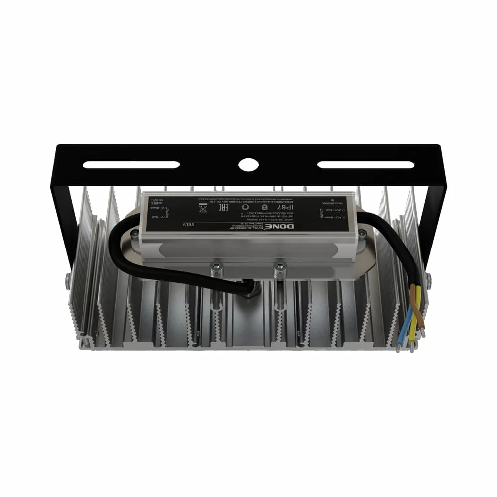 Источник питания наружного исполнения, его металлический корпус залит теплопроводящим компаундом. Это снижает температуру на элементах источника питания, увеличивая срок его службы. Кроме того, за счёт наружного исполнения источника снижается нагрев светодиодного модуля, и сам светильник служит дольше.