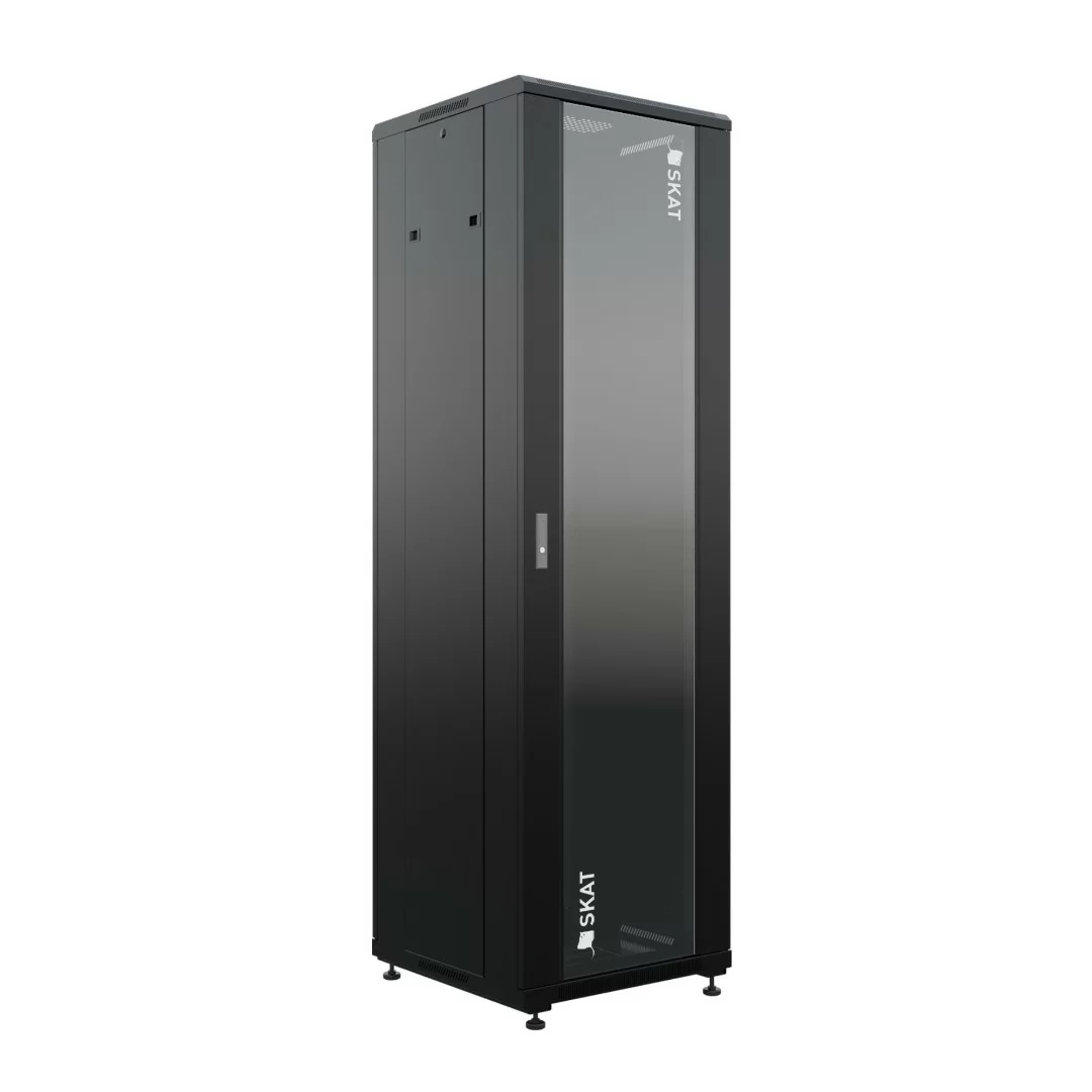 Напольный универсальный серверный шкаф предназначен для установки различного сетевого оборудования стандарта 19 дюймов (по ширине 485 мм), крепление которого соответствует требованиям ГОСТ 28601.2–90 (МЭК 60297). Пассивное и активное сетевое оборудование крепится на вертикальные 19" направляющие шкафа друг над другом. Доступ к оборудованию осуществляется со стороны передней и задней двери, а также съемных боковых стенок шкафа.