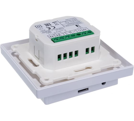 Большой сенсорный экран информирует пользователя о значениях температуры и других настройках. Имеется подсветка экрана. Настройка производится с помощью сенсорных датчиков на экране. Также настройку терморегулятора можно производить с помощью приложения на смартфоне или планшете. Один терморегулятор можно подключать к нескольким приборам (до 10 штук). Одновременно управлять терморегулятором с помощью Wi-Fi могут два пользователя.