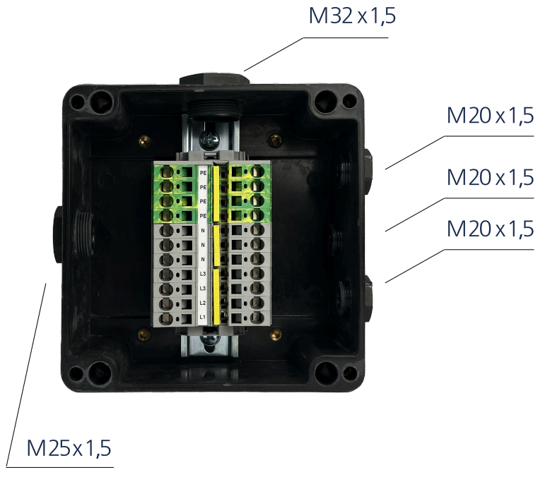 Коробка соединительная КСТ-КС-П-L(6)/4;N(6)/3;PE(6)/4-П-А:ЗВ(32)/1-С:ЗВ(25)/1-D:ЗВ(20)/3
