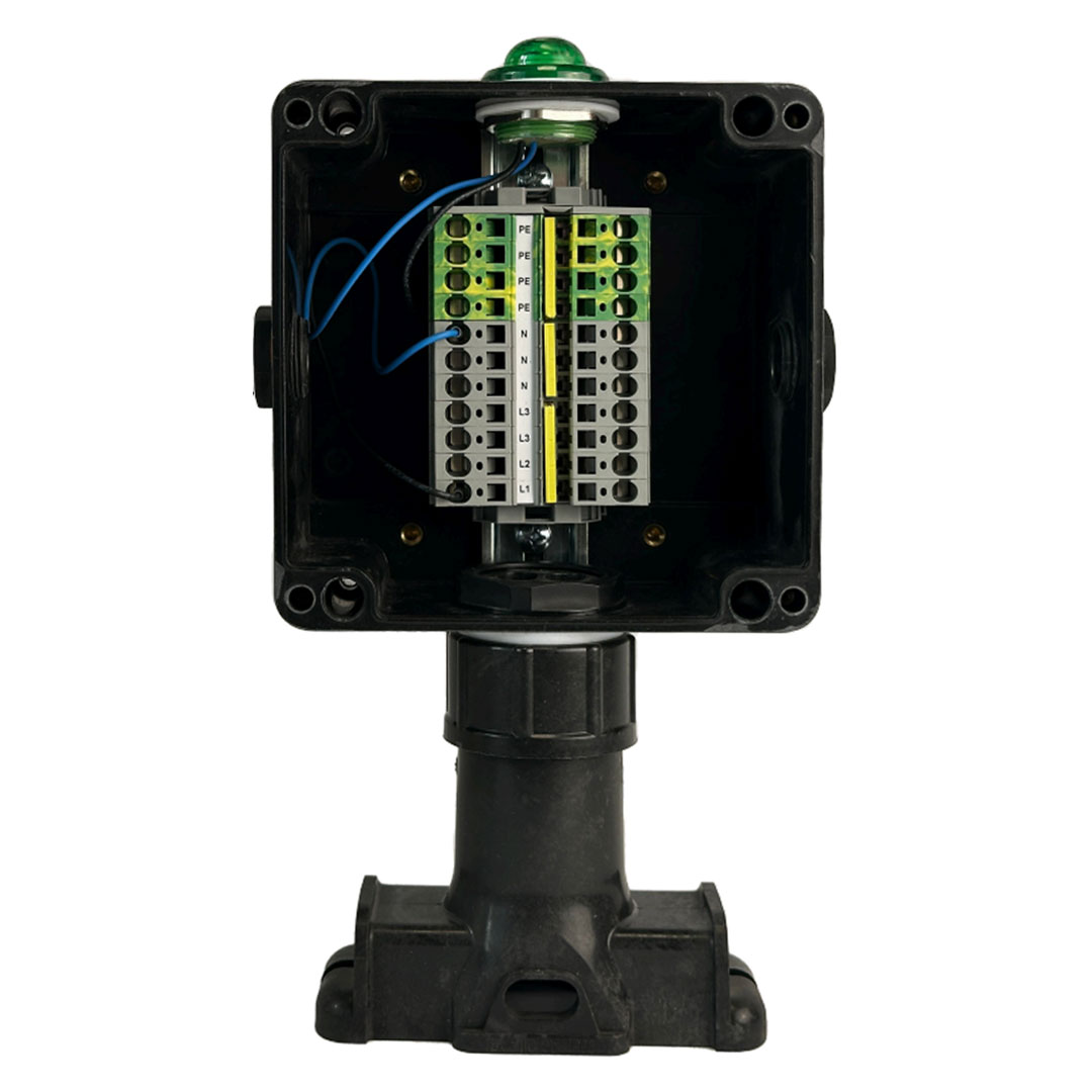 Коробка представляет собой герметичную оболочку с установленными в ней взрывозащищенными кабельными вводами и заглушками, а также клеммами для подключения жил кабелей. В зависимости от типа присоединяемых кабелей могут применяться различные кабельные вводы. В коробке установлен светосигнальный индикатор для индикации работы линии.