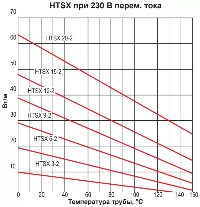 Выходная мощность кабеля HTSX может иметь разные показатели в зависимости от температуры окружающей среды. Колебания температуры окружающей среды или тепла, которое теряется через теплоизоляцию, компенсируются автоматически на всем протяжении обогреваемой трубы.