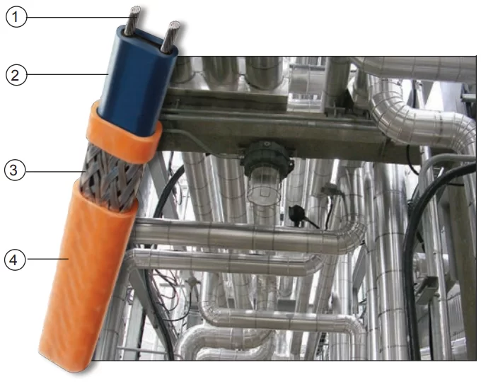 Саморегулирующиеся нагревательные кабели HTSX 6-2-OJ предназначены специально для поддержания температуры рабочих процессов или защиты от замерзания в средах, где требуется воздействие высоких температур. Нагревательный кабель HTSX выдерживает воздействие температуры, соответствующей температуре продувки паром.