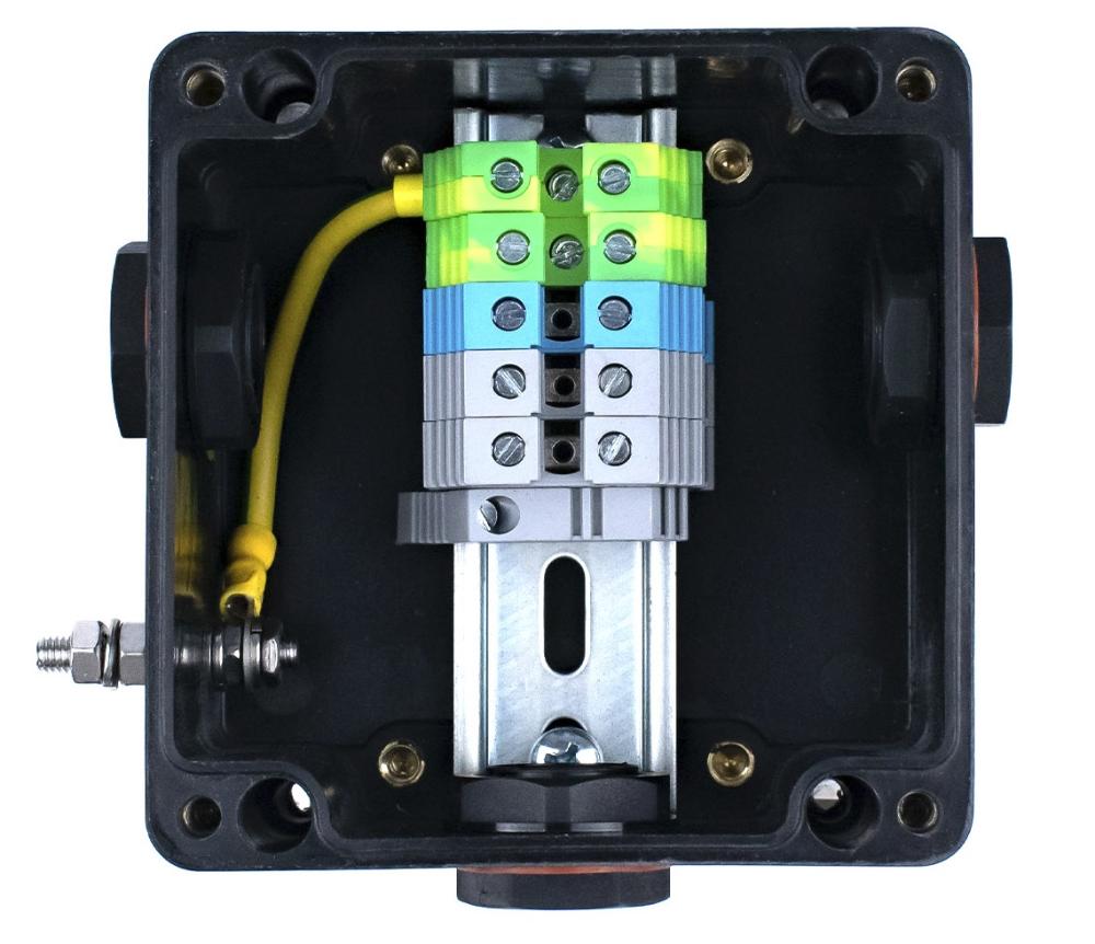 Коробка устанавливается на трубопровод при помощи кронштейна или на близлежащую металлоконструкцию. Применяемые клеммные наборы позволяют выполнить подключение многожильных или одножильных кабелей сечением от 0,5 до 10 мм.кв.