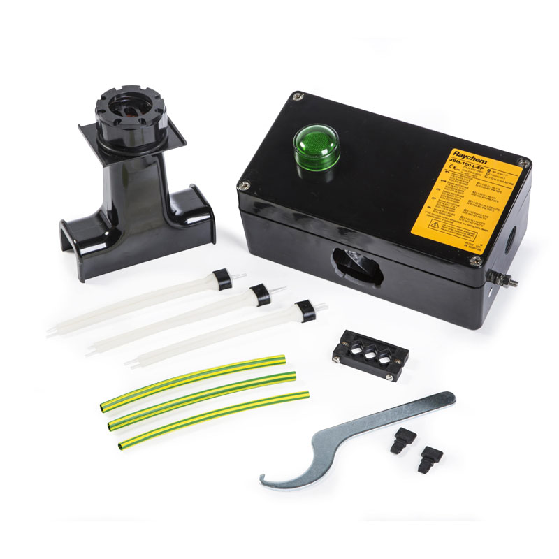 Набор JBM-100 выполняет функции соединительного набора и набора для уплотнения прохода через теплоизоляцию. Прочная стойка защищает греющий кабель и обеспечивает проход кабеля через теплоизоляцию толщиной до 100 мм.