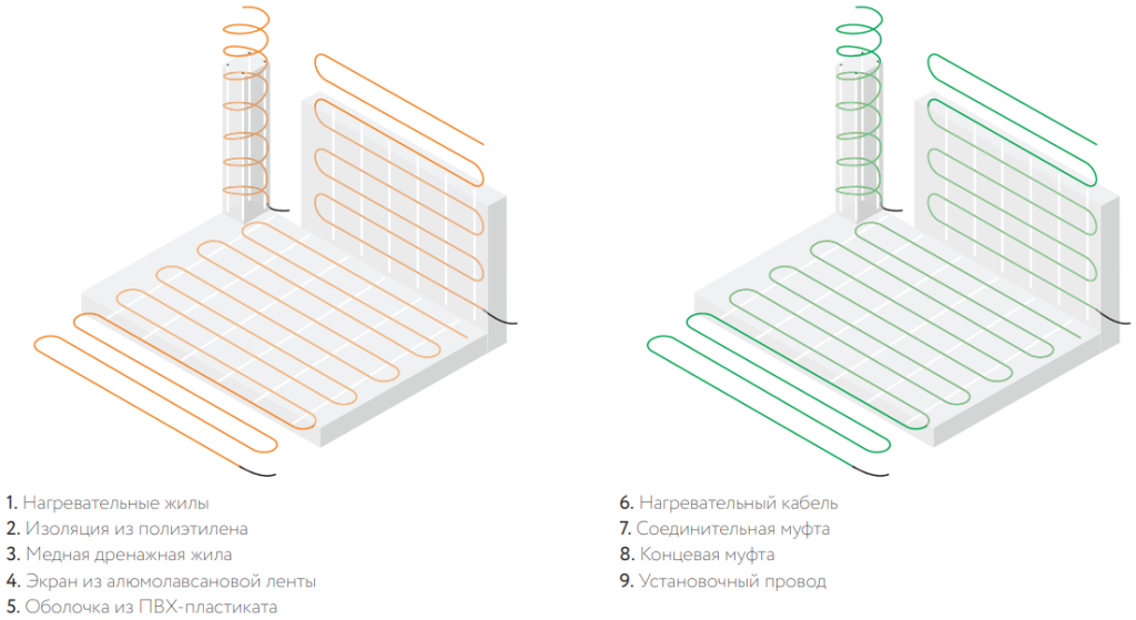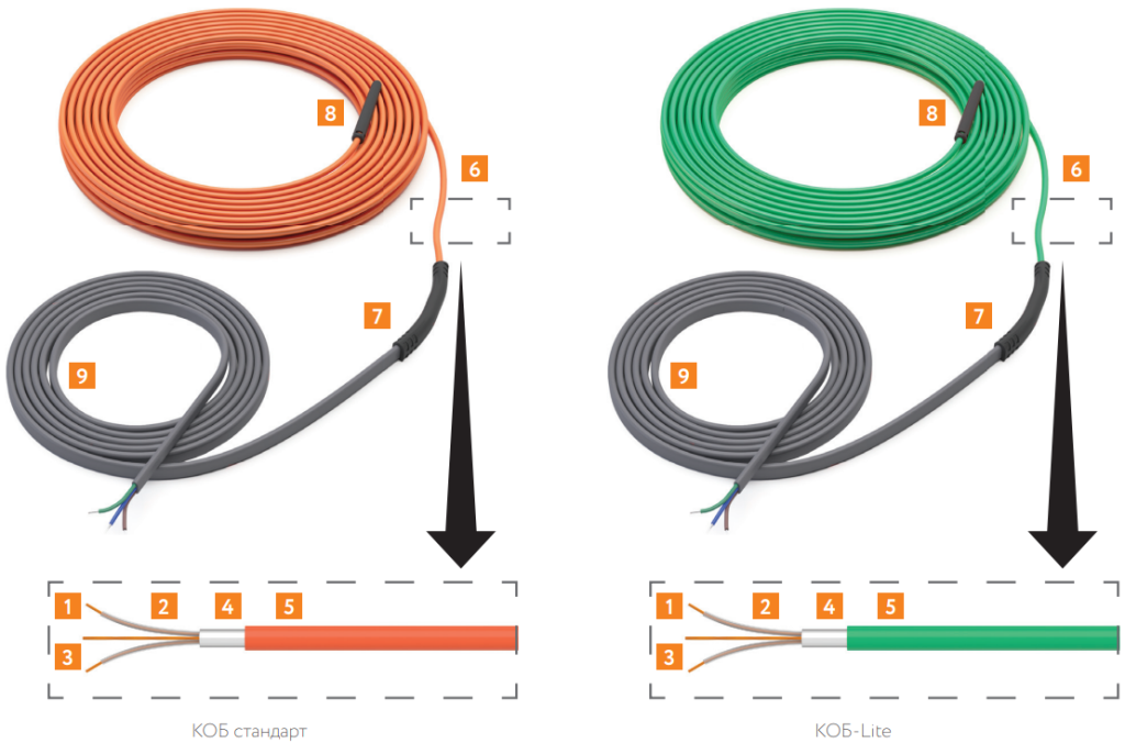Кабель подогревает и сушит бетон необходимое время исходя из условий эксплуатации и размеров бетонной конструкции. После застывания бетона кабель отключают от сети питания, обрезают концы и оставляют внутри бетонной конструкции. Кабель поставляется в секциях. Широкий ассортимент производимых нагревательных секции КОБ позволяет подобрать необходимую мощность для обогрева конструкции любых типов (от малых габаритов колонн до больших площадей стен и перекрытий)