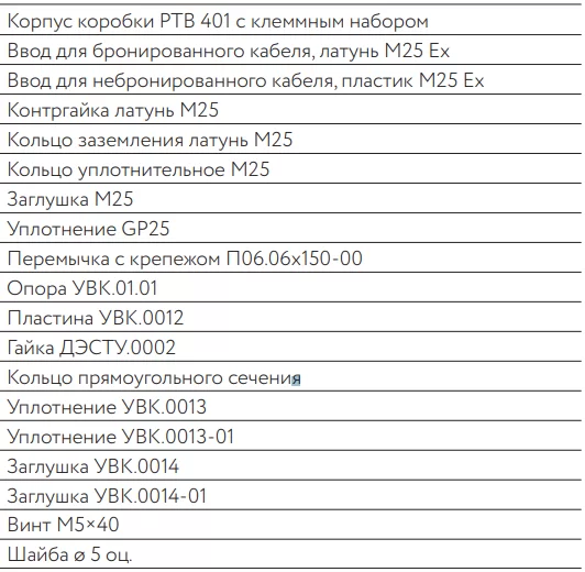 Комплект поставки соединительных коробок РТВ 401(П)-0/0-ИС (6мм2):