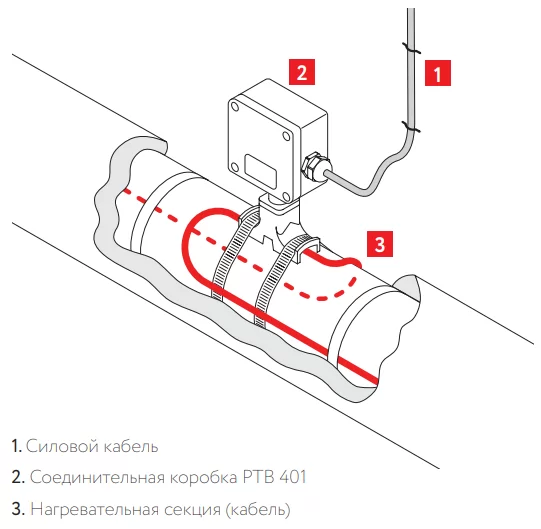 - Эффективное решение для подключения питания и ввода под теплоизоляцию саморегулирующихся электрических нагревательных кабелей