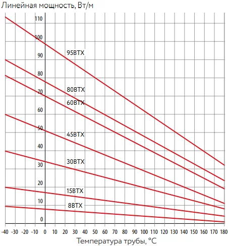 - Автоматически регулирует тепловыделение в ответ на изменение температуры трубы