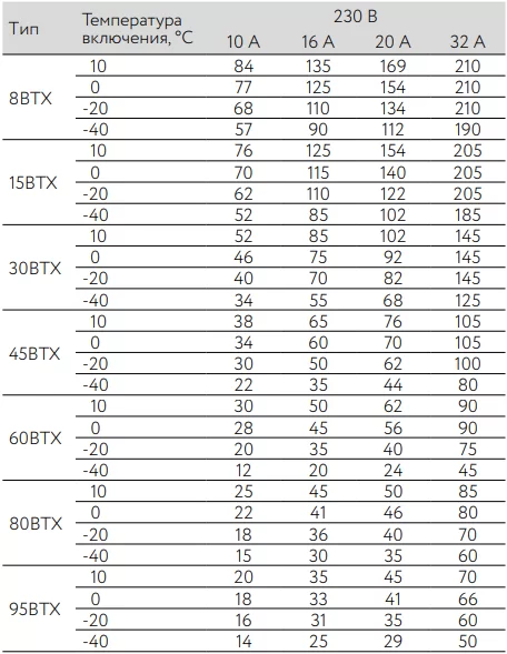 Рекомендованная предельная длина нагревательной секции, м 95ВТХ2-ВР