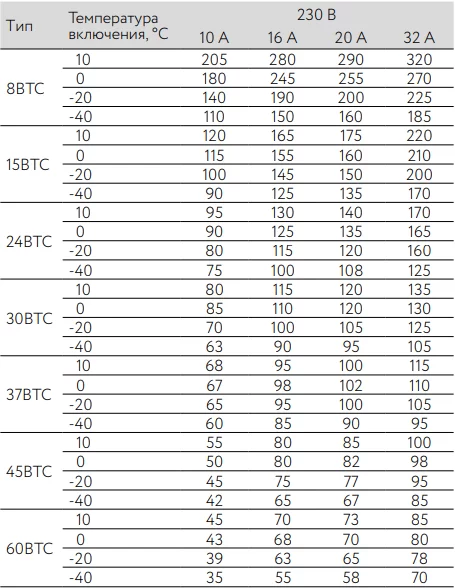 (или суммарная длина секций одной марки, подключаемых параллельно) в зависимости от типа автоматического выключателя питания: