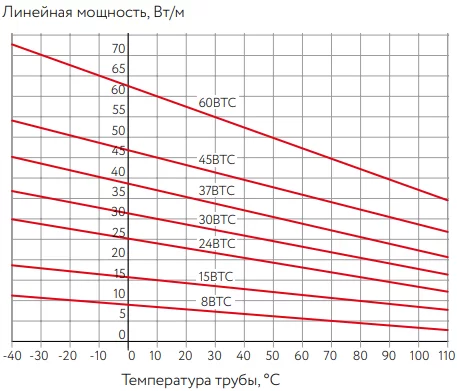 - Автоматически регулирует тепловыделение в ответ на изменение температуры трубы
