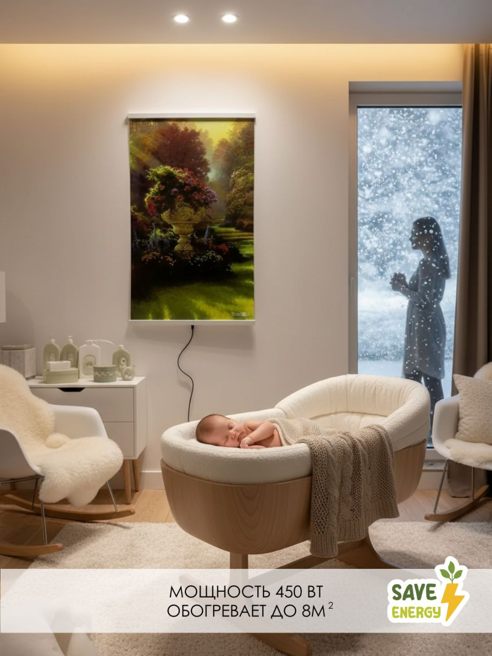Декоративно-плёночный инфракрасный обогреватель — это стильное и современное решение для быстрого и комфортного обогрева помещений до 8 м². Устройство выполнено в виде интерьерной картины и легко вписывается в любой дом, офис или квартиру, не занимая пространство и украшая помещение.