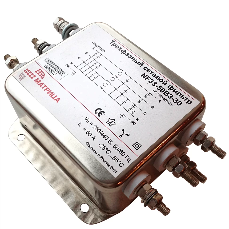 Трехфазный сетевой фильтр NF33-50 предназначен для подавления электрических помех в трехфазных электрических сетях.