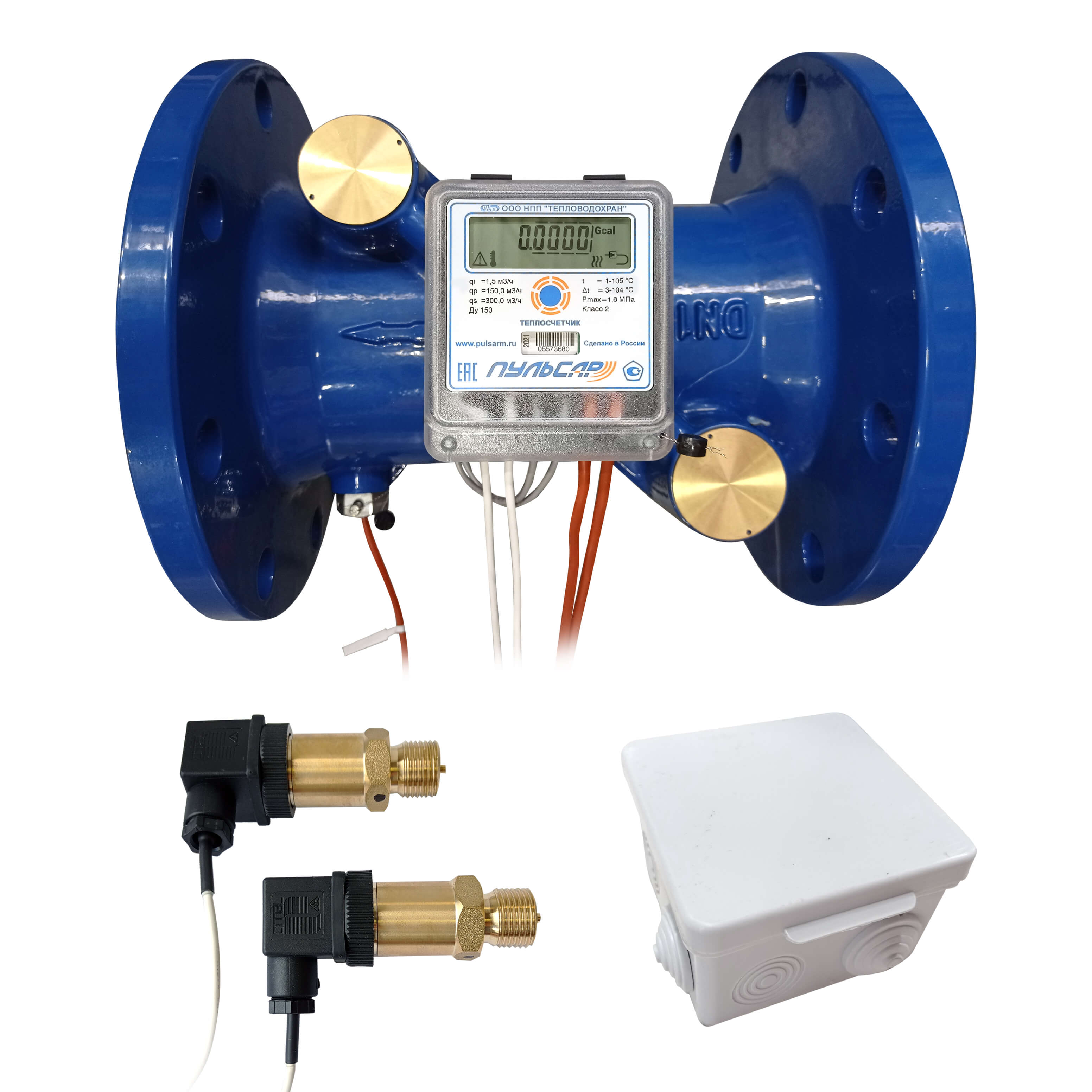 Общедомовый теплосчетчик Ду150 M-Bus + 3 имп. входа, qp=150 м3/ч, 2 датчика давления, обратный, 105°C