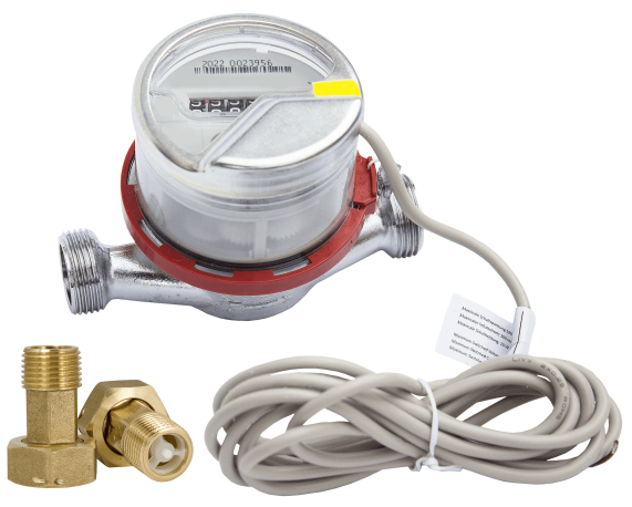 Счетчик воды Миномесс СВГИ, 90°C, DN 15, Qn 1,5, L 80 mm, с импульсным датчиком (1L/Imp.), с присоединителями с обратным клапаном