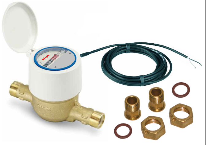 Счетчик воды Миномесс СВКи, колбовый, 40°C, DN 20, Qn 2,5, L 190 mm, с импульсным датчиком (1 или 10L/Imp.), с присоединителями