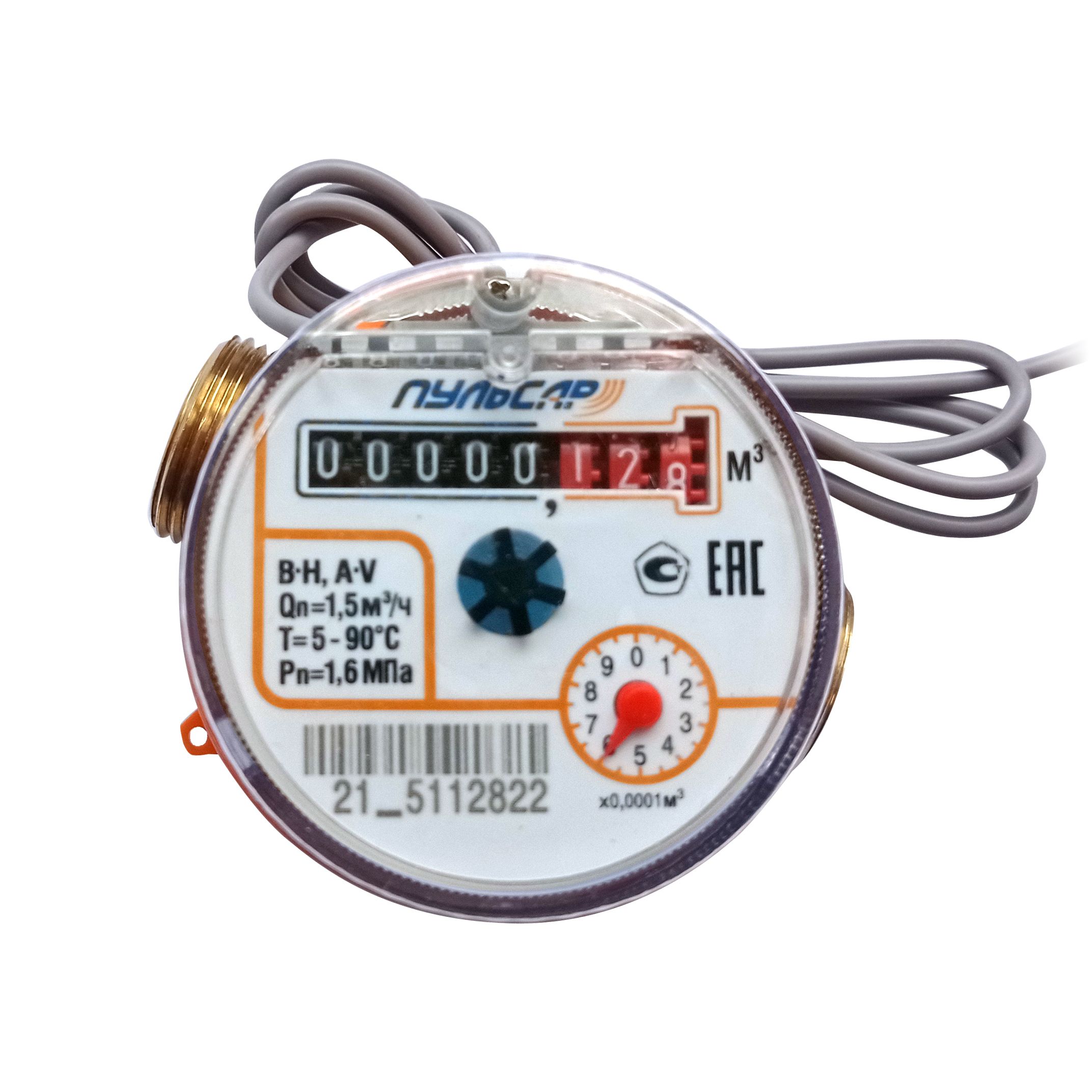Квартирный счетчик воды «Пульсар ПРО» Ду15 импульсный выход, Qn=1,5 м3/ч, L=110мм, (присоединители без обратного клапана в комплекте)