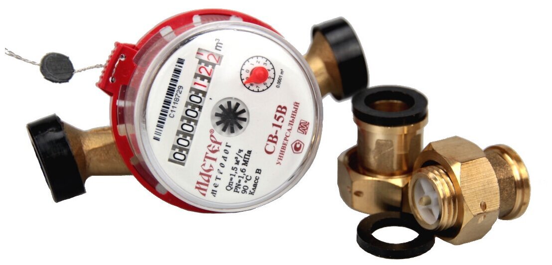Счетчик воды Мастер Люкс СВ-15В Класс"В", соединительный комплект с обратным клапаном
