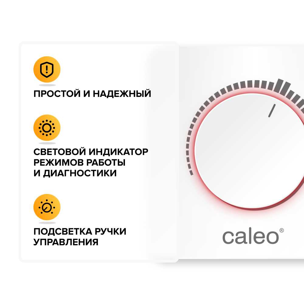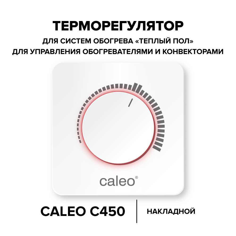 Накладной терморегулятор Caleo C450 предназначен для управления системами обогрева 'теплый пол', а также обогревателями. Модель обладает простым интуитивно понятным аналоговым управлением, что делает ее незаменимой для покупателей пожилого возраста. Подходит для всех видов электрических теплых полов.Терморегулятор C450, несмотря на простую конструкцию и привлекательную цену, имеет ряд особенностей, которые выгодно отличают его от аналогов: